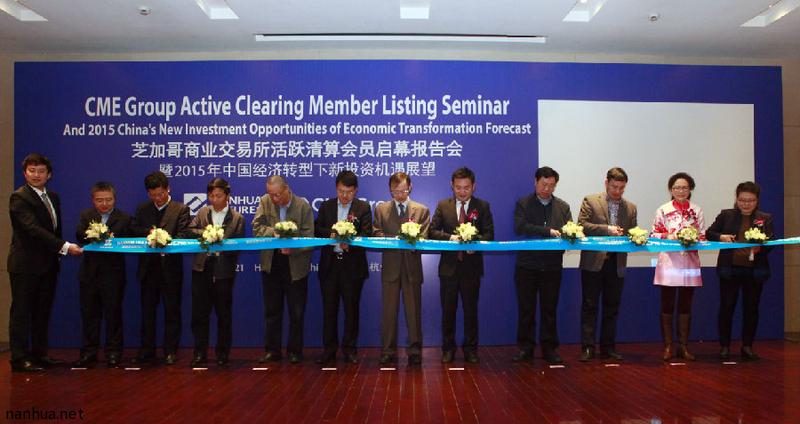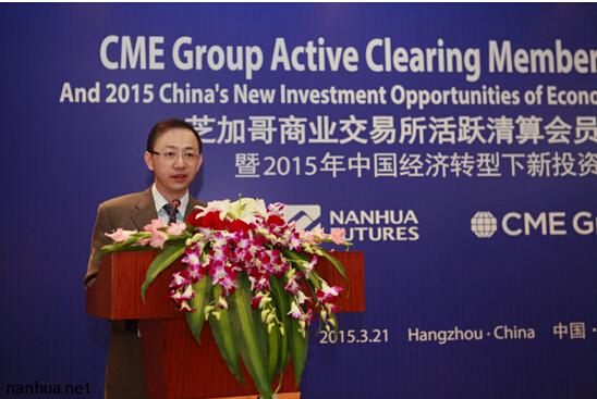 3月21日,芝加哥商业交易所活跃清算会员启幕报告会暨2015年中国经济转型下新投资机遇展望在西子湖畔隆重举行。中国人民银行调查统计司副司长徐诺金、浙江省证监局副局长蒋潇华、国家发改委对外经济研究所所长毕吉耀等嘉宾受邀莅临,中国·南华期货总经理罗旭峰、副总经理朱斌、横华国际金融股份有限公司副董事长颜树萍出席会议,美国子公司总经理夏润喆主持。