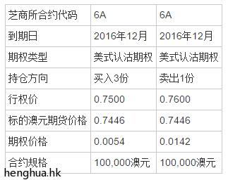 澳元2016年12月份到期期货合约(芝商所合约代码6AZ6):