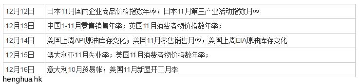 ▶ 国际现货黄金上周累计收跌17.80美元,跌幅1.51%,收报1159.00美元每盎司,黄金价格连续五周收跌。现货白银上周小幅下跌0.3%,收报于16.86美元每盎司。上周美国WTI原油1月期货下跌0.37%,收报51.50美元。布伦特原油2月期货下跌0.29%,收报54.33美元。周六达成的非OPEC产油国减产协议预计将在下周继续推升油价走高。