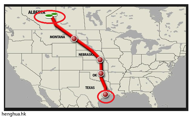 这条输油管线的意义在于: 如果管线一旦修成, 加拿大的油砂原油和美国的 页岩油可以直接高速的到达墨西哥湾出海口.