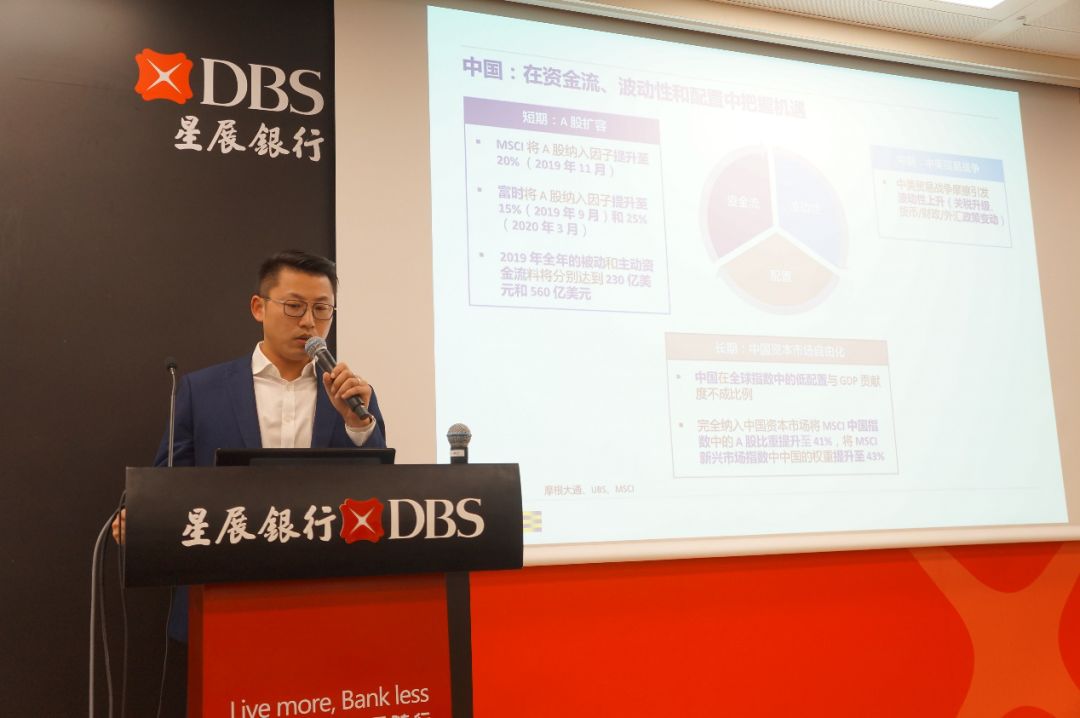新加坡交易所中国区副总监王立鹏先生从资金流、波动性和配置三个层面分析了MSCI指数带来的亚洲投资机会。他表示由于受A股扩容、中美贸易战争及中国资本市场自由化等多重因素的影响,亚洲市场目前存在丰富的投资机会。他还详细介绍了新交所富时中国 A50 指数期货和新交所MSCI中国自由指数SM净总收益期货。