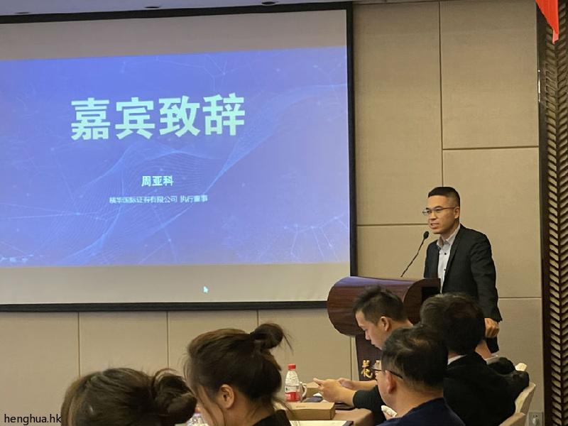 会议伊始,由横华国际证券有限公司执行董事周亚科代表主办方致辞,感谢各位嘉宾及与会人员出席本次活动。周亚科表示,希望通过本次会议,让与会人员能多角度、多方位、多策略的看待2021年香港证券市场的投资机会与挑战,并用更优化的投资理念、更专业的投资逻辑分析市场,使账户收益稳健增长。