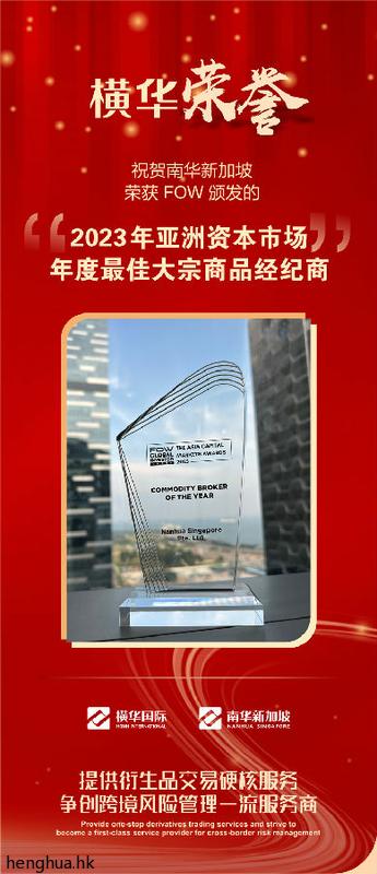 在晚间的颁奖典礼中,南华新加坡继2022年荣获“FOW 2022年亚洲资本市场——年度中资期货公司”奖项后,今年又收获FOW 2023年亚洲资本市场——年度最佳大宗商品经纪商奖项。南华新加坡将继续保持初心,致力于为全球客户搭建更稳定安全的平台,提供更好的金融服务。南华新加坡持有新加坡资本市场服务牌照(CMS Licence),是新加坡交易所(SGX)衍生品市场交易及清算会员,上海国际能源交易中心(INE)认可的境外中介机构,大连商品交易所(DCE)及郑州商品交易所(ZCE)认可的境外经纪机构。南华新加坡致力为机构及零售客户提供包括期货及期权、杠杆式外汇、OTC产品等交易及清算服务。公司自2016年成立以来, 秉承"专业服务,诚信经营,创造价值,追求卓越"的经营理念,依托经验丰富,专业高效的工作团队,始终把投资者的需求放在第一位,真诚为投资者正确做出每一项投资决策提供专业高效的服务。南华新加坡经过多年发展,目前公司经营稳健,管理规范,服务专业,资产优良, 在新加坡中资期货市场累积了广泛的声誉和品牌优势,连续四年荣获新交所及上海国际能源交易中心的认可及荣获多个奖项。